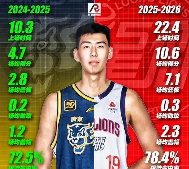 徐昕2003年12月出生,身高2米26,臂展2米26,他在2021年夏天就進(jìn)入了廣東隊(duì)一隊(duì),新秀賽季出戰(zhàn)6場(chǎng)常規(guī)賽,場(chǎng)均可以拿到4.5分和2.5個(gè)籃板。在廣東隊(duì)的4個(gè)賽季,徐昕一共打了93場(chǎng)常規(guī)賽,場(chǎng)均出場(chǎng)時(shí)間只有10分鐘左右,雖然他在為數(shù)不多的出場(chǎng)時(shí)間里效率很高,但是始終得不到更多的機(jī)會(huì)。去年夏天的熱身賽上徐昕和杜鋒指導(dǎo)發(fā)生爭(zhēng)執(zhí),隨后徐昕申請(qǐng)交易,然后被租借至廣州龍獅隊(duì)。
