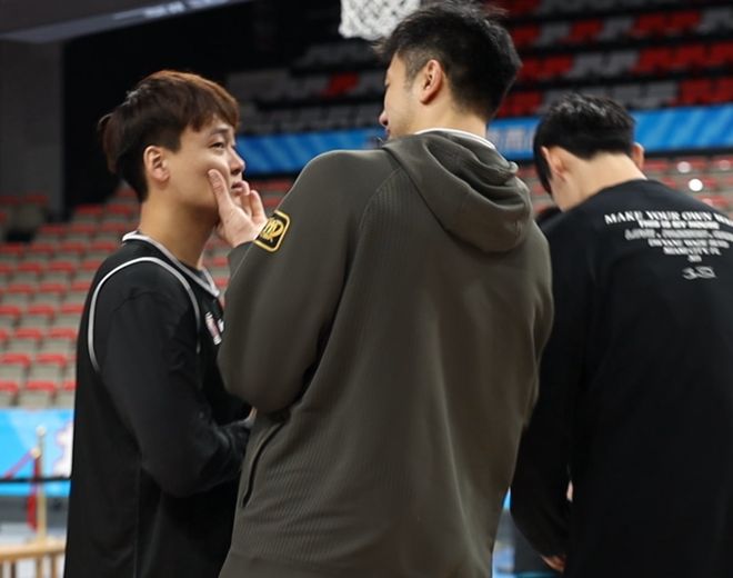 而在踩場的時候,雙方還是非常暖心的。就比如鄒雨宸第一時間捏臉趙睿,這樣的畫面就非??蓯哿?。當然其他球員也在頻繁互動聊天,雙方的關(guān)系都非常好。