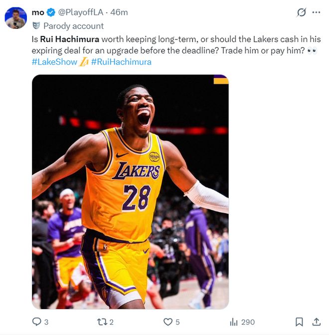 湖人媒體:此役打完后大家覺得八村是否值得球隊長期留用?還是說湖人該在交易截止日前利用他的合同進行交易換取更好的球員?還是繼續(xù)留著跟他續(xù)約?