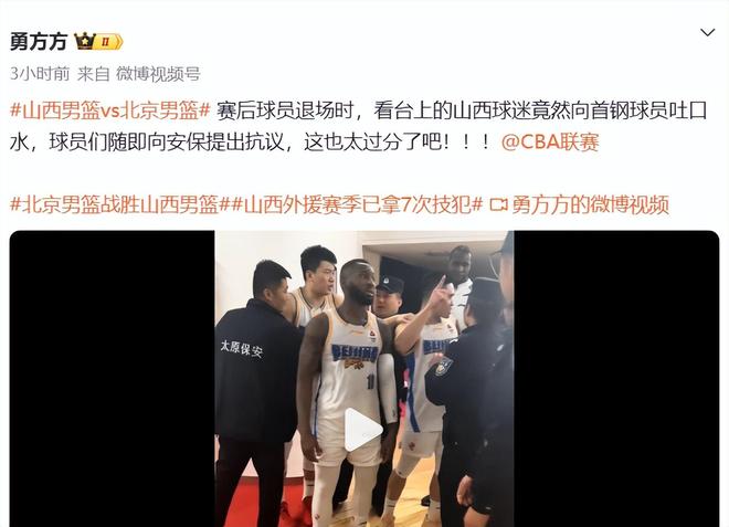 面對(duì)缺少周琦、趙睿、曾凡博、斯佩爾曼多位主力的殘陣北京,擁有天時(shí)人和地利,山西卻還是輸給了陣容比他們更加殘缺的北京,吃下3連敗,山西球迷氣急敗壞,再次做出不冷靜舉動(dòng),媒體人勇方方爆料,賽后山西看臺(tái)有人向北京球員吐口水(估計(jì)山西又要被CBA追加處罰了)。