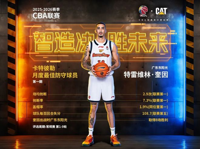 在2025-26賽季CBA第一期月最佳防守球員評選中,奎因憑借出眾的防守數(shù)據(jù)當(dāng)選,彼時他 場均送出2.9次搶斷,搶 斷率高達(dá)7.3%,兩項數(shù)據(jù)均領(lǐng)跑全聯(lián)盟,1.9%的蓋帽率亦位居同位置球員榜首。