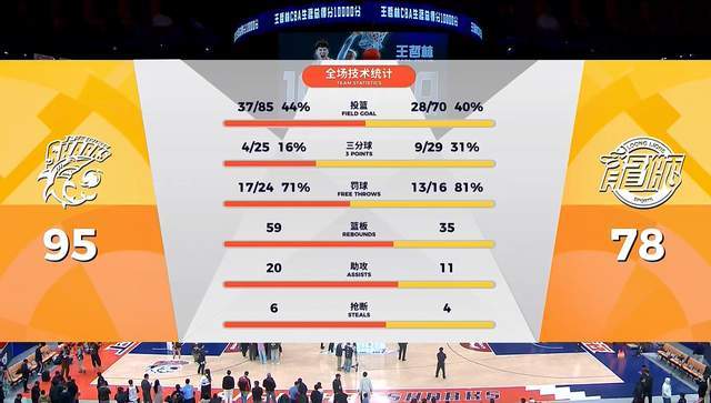上海隊(duì)到了第四節(jié)終于真正的爆發(fā)了,王哲林更是砍下了職業(yè)生涯的10000分,成為CBA史上第六人,大王直接把這場比賽的進(jìn)球收藏了。憑借末節(jié)23-9,最終,上海隊(duì)主場以95-78強(qiáng)勢逆轉(zhuǎn)擊敗了廣州隊(duì),拿到了一場寶貴的勝利。