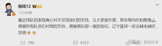 楊銘主教練在這個(gè)時(shí)候離開(kāi),很多球迷都認(rèn)為是因?yàn)閼?zhàn)績(jī)不理想而離開(kāi)的。同時(shí)很多球迷疑惑,楊銘離開(kāi)遼寧男籃是主動(dòng)離開(kāi)還是被動(dòng)離開(kāi)呢?從一些媒體人和一些事情爆料來(lái)看,楊銘應(yīng)該是自己主動(dòng)離開(kāi)遼寧男籃的,楊銘最近在社交媒體發(fā)文表示:“最近球隊(duì)的表現(xiàn)真心對(duì)不住球迷們的支持,讓大家很失望,我非常內(nèi)疚和慚愧?!?/p>