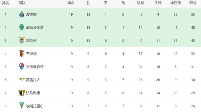 本場過后,波爾圖在葡超已經(jīng)實現(xiàn)11連勝,上一次他們在聯(lián)賽中丟分,還是在主場戰(zhàn)平本菲卡,這也是賽季至今,波爾圖在葡超唯一一場沒贏的比賽,其他18場全勝。幾乎完美的發(fā)揮,讓波爾圖在積分榜上遙遙領(lǐng)先。如今排名第二的葡萄牙體育,落后波爾圖7分,根本無力威脅領(lǐng)頭羊的位置。
