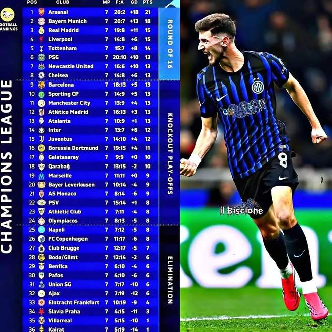 所以國米基本上要在2月份踢兩場淘汰賽附加賽,但附加賽里也有區(qū)別,如果能排在9-16名那就能獲得種子隊資格,賽程上有先客后主的優(yōu)勢,排名越高抽到弱旅的概率也就越大。而如果我們算一下就能發(fā)現(xiàn),其實不論本場比賽結果如何,國米其實已經(jīng)基本鎖定了種子隊資格!