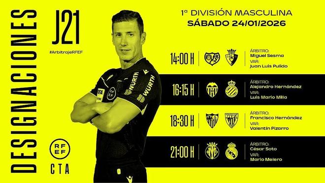 西班牙足協(xié)官方公布了周六西甲四場比賽的裁判安排,索托-格拉多將執(zhí)法皇馬客場對陣比利亞雷亞爾。