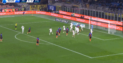 半場補時第2分鐘,巴斯托尼傳中,皮奧禁區(qū)頭球破門,國米半場連追三球完成反超。