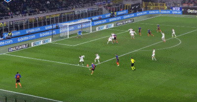 第41分鐘,迪馬爾科傳中,勞塔羅禁區(qū)躍起頭球破門扳平。