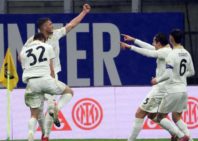 國際米蘭排出352陣型。勞塔羅-馬丁內(nèi)斯和皮奧-埃斯波西托搭檔雙前鋒。路易斯-恩里克、蘇契奇、澤林斯基、姆希塔良和卡洛斯-奧古斯托組成5中場。比塞克、德弗賴和巴斯托尼3后衛(wèi)首發(fā)出戰(zhàn)。索默擔(dān)任首發(fā)門將。國際米蘭首發(fā)陣容總身價(jià)3.33億歐元,而比薩首發(fā)陣容總身價(jià)只有4220萬歐元。
